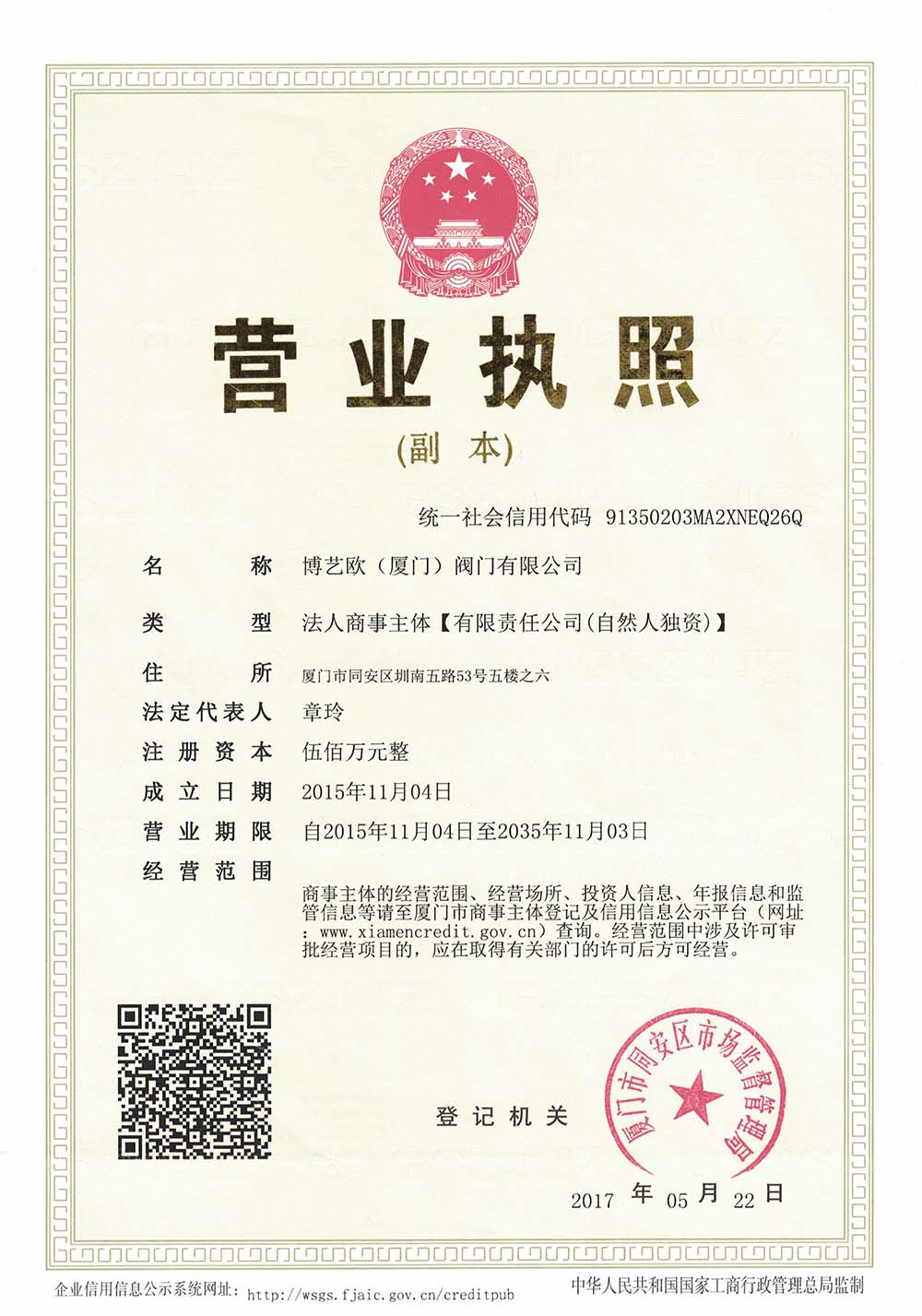 博艺欧(厦门)阀门有限公司企业类型